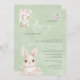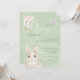 Celebrar a chegada de uma garotinha com este encantador convite de chá de fraldas para temas coelhinhos. Com um coelho pintado à mão, rodeado de flores macias, uma borboleta delicada, e um fundo verde pastel, este design é perfeito para um chá de fraldas de inspiração primavera ou de floresta. As fontes de script elegantes adicionam um toque de sofisticação, enquanto a parte traseira inclui um código de QR conveniente para fácil RSVP ou acesso ao registro. Ideal para os pais a serem que amam a natureza, cores suaves e uma sensação encantadora e semelhante a um livro de histórias. Personalize com os detalhes do evento e torne esta ocasião especial ainda mais memorável!