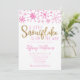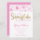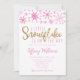 Chá de fraldas do inverno festivo maravilhoso, convite para apresentação com flocos de neve cor-de-água rosa com um falso texto de tipografia dourada que diz "Um floco de neve está a caminho." Perfeito para o chá de uma garota na época de Natal.