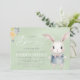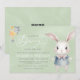 Este adorável convite de chá de fraldas é perfeito para celebrar um bebê! Apresentando um coelho pintado à mão com aquarela vestido com uma roupa azul encantadora com um arco rosa macio, este design exumenta doçura e elegância. Delicadas estrelas pastéis soam o fundo verde-sábio, criando uma atmosfera balnear e sonhadora. A parte traseira inclui um código QR para fácil acesso ao registro ou aos detalhes do evento, fazer e prática. Uma escolha encantadora para acolher um garotinho! Totalmente personalizável para seu evento especial.
