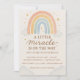 Celebre seu momento especial com este convite de revelação de gênero pastel e adorável, apresentando a frase “Um Pequeno Milagre Está a Caminho”. Desenhado em tons suaves de aquarela com sutil rosa, azul, pêssego e detalhes em dourado, este convite traz um toque doce, moderno e caprichoso para a sua celebração.