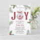 Espalhe a alegria neste feriado com o nosso convite para Chás de fraldas de Natal festivo e inclusivo. O nosso design apresenta cores tradicionais, vermelhas, brancas e verdes, adornadas com ramos de abetos festivos e bagas ocas. A frase encantadora "um pequeno pacote de JOY" celebra a chegada do seu bebê precioso. A nossa divertida carta e a decoração bálida de Natal em vez do 'O' acrescenta um toque encantador. Além disso, nosso modelo elegante pode ser totalmente personalizado para ajustado dos detalhes do seu evento. Juntem todos para celebrar o amor e os novos começos.