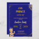 Marinho de convite para chá de fraldas modelo azul e príncipe dourado. Bonito com sotaques azuis e dourados.