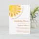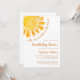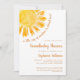 Este belo convite para o chá do bebê ensolarado apresenta o texto "Um pequeno raio de sol está quase aqui!" com um sol amarelo. Perfeito para um chá de fraldas neutro em termos de gênero. Facilmente personalizável. Use a Ferramenta Design para alterar o tamanho, o estilo ou a cor do texto. Porque nós criamos a nossa trabalho de arte, você não encontrará esta imagem exata de outros designers. Original Watercolor © Michele Davies.