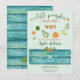 Convite de Chá de Bebê de Outono com Abobrinha Verde. Design de convite de chá de bebê original em aquarela de outono, pequenas abobrinhas estão chegando! A combinação de tábuas rústicas turquesa e abobrinhas de outono vai decorar o feriado de forma muito fresca.