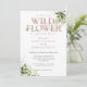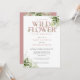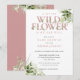 Um convite de chá de bebê de pequenas flores silvestres com uma elegante tipografia rosa poeira e belas folhagens de verde botânico. Criado por Thisisnotme©
