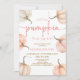 Este é um convite para chás de fraldas de abóbora rosa-queda! Um Pequeno Pumpkin está a caminho!