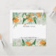 "Um Pequeno Eucalipto De Laranjas Cutias Obrigado A Nota De Chá de fraldas De Placa Plana." A cor verde macia de fundo pode ser alterada e é misturada com trabalho de arte de cor d'água das laranjas do Cutie, flores, frutas para bebês, citrinos e folha de eucalipto verde para o reverso tem texto tipográfico, "está a caminho uma pequena gracinha". Trabalho de arte por uma artista e designer internacionalmente licenciada, Audrey Jeanne Roberts, copyright.