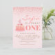 Convite Um primeiro aniversario cor-de-rosa brilhante Doce