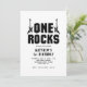 Para o pequeno que está comemorando seu primeiro aniversário de marcos. 'ONE ROCKS', convite de festas de primeiro aniversario de guitarra branca e preta. Personalize o convite para torná-lo seu. Há três caixas de texto que podem ser alteradas. O texto de design na primeira caixa pode ser guardado no estado em que se encontra ou editado e, com as outras duas caixas, incluir o seu próprio texto.