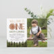 Um convite para fotos de primeiro aniversario da floresta feliz, bonito e único.