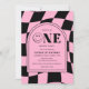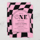 Um Feliz Convite Para primeiro aniversario De Bebê Feliz De Rosto Rosa.