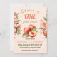 Um doce, doce, primeiro aniversario Floral de Pêssego de Verão Convocação de pêssegos, flores e folhas verdes