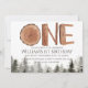 Convite Um primeiro aniversario Rústico de Árvores Verdes