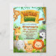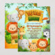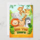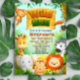 Celebre a aventura na savana para todas as idades. Este convite de safari é uma interpretação moderna da natureza selvagem que amamos. Cada elemento e plano de fundo são desenhados digitalmente para combinar e proporcionar uma aparência de filme animado, com o nome do aniversariante destacado no centro para dar um toque personalizado ao convite