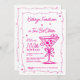 Whimsical e feminina, este convite de aniversário para o tema "espresso martini" apresenta um grande martini de rabisco rosa e um quadro. Todo o texto é editável.