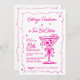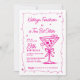 Whimsical e feminina, este convite de aniversário para o tema "espresso martini" apresenta um grande martini de rabisco rosa e um quadro. Todo o texto é editável.