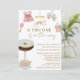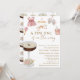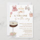 Convite de Chá de Bebê para Menina "Um Tini One Está a Caminho" Espresso Martini - Um convite de chá de bebê único e adorável para menina com um espresso martini adornado com um laço coquete marrom moca e itens de bebê, mamadeira, chocalho, vestido de bebê rosa, sapatinhos e móbile de bebê com arco-íris e nuvens, todos em ilustrações em aquarela. Fonte de letra manuscrita elegante ao lado de fonte de letra bloco elegante em tom marrom. Edite este modelo de convite de chá de bebê com os detalhes do seu evento. Perfeito para chás de bebê de primavera, verão ou outono. Para futuros pais ou mães que procuram algo diferente e único. Disponível em impressão e download digital, perfeito para enviar via mensagem de texto, e-mail ou mídia social.