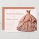 Convite Um vestido Dourado de Rosa encantado Quinceanera