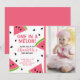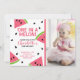 Um em um convite de aniversário Melon, adicione facilmente sua própria foto e detalhes pessoais para uma bela comemoração de primeiro aniversário personalizada. Resumos e imagens brilhantes de melancia cor-de-rosa e verde com embelezamento de sementes de melancia. Posso encontrar suprimentos de festa de aniversário correspondentes no meu compro.