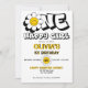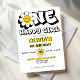 Uma garota feliz retro-margarida modelo convite de festas, convites de festas primeiros aniversarios de menina, festa de margarida retrô, tema retro branco e amarelo, retro damas, convites de festas de aniversários hippie