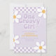 Convite de 1º aniversário Uma Garota Groovy Retro inspirado com fontes estilo anos 70 e margaridas e padrão xadrez.