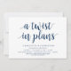 Mudar o cartão de data. Este é o convite para a festa de casamento remarcado (adiado / adiamento) cartão (Uma mudança nos planos), no tema de design simples minimalista moderno, fonte Azul Naval.
