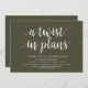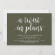 Cartão de mudança de data. Este é o convite da festa de Casamento remarcado (adiado / adiamento) cartão (Uma mudança nos planos), no design moderno minimalista simples e limpo com tema verde oliva.