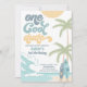 Um Convite de festas de primeiro aniversario de Surf Retroativo Legal Todos os designs são © PIXEL PERFECTION PARTY LTD