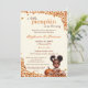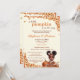 Bem-vindos à chegada de uma doce menina com este delicioso convite de chá de fraldas. Apresentando uma adorável menina afro-americana com pulgas afro e um arco bonito, vestida com um lindo vestido laranja que complementa seu tom de pele marrom. Ela se senta ao lado de uma abóbora, incorporando a essência do outono, inocência e alegria. 🍂 👶 🎃 Ideal para um chá de fraldas de outono, este convite irá motivar os seus convidados com o seu design e matizes encantadores. Ordene que faça sua celebração realmente especial! ©2024 Designs do Partido Sassy