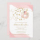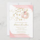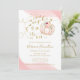 Adorável convite de chá de fraldas de abóbora rosa, excelente para o outono ou chá de fraldas de halloween.