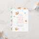 Está a caminho um pouco de gracinha! Este adorável design de convite de chá de fraldas apresenta os detalhes do seu evento numa mistura de letras de escrita elegantes e tipografia de serifa clássica. Há um quadro de laranjas desenhadas à mão, flor de laranja, e folhas verdes em um layout orgânico espalhado. Cartões invertidos para um padrão da mesma fruta de aquarela. Um design simples e elegante, perfeito para qualquer época do ano. Veja a coleção ligada nesta página para itens correspondentes ou visite a nossa loja para mais convites para chuveiros de bebês.