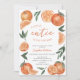 Este convite apresenta laranjas para convidar amigos e família para comemorar o pequeno "lindo"!