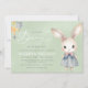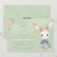 Este encantador convite de chá de bebê apresenta um coelho pintado à mão em aquarela vestido com um vestido azul de bolinhas e um laço rosa, tornando-o perfeito para celebrar uma menina. Estrelas pastéis delicadas e fontes elegantes em estilo script adicionam um toque caprichoso, enquanto o fundo suave em verde sage realça seu apelo atemporal. O verso inclui um código QR conveniente para fácil acesso ao registro ou detalhes do evento. Uma escolha doce e elegante para dar as boas-vindas a uma menininha! Totalmente personalizável para o seu evento especial.