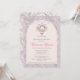Convite para Chá de fraldas de outono e Ação de Graças para uma menina. Possui um lindo peru-menina desenhado à mão e adoráveis penas de gingham contra um fundo lilático. O dorso apresenta um padrão de penas gingham em uma cor de creme leve.
