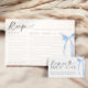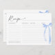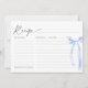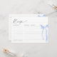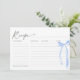 Cartão de recebimento para inserção de Chá de panela com arco de aquarela desenhado à mão em azul empoeirado. Esta design é perfeita para um Chá de panela temático "Ela é casando" ou "Algo azul antes de mim". O convite de correspondência, as placas de compartimento e os sinais também estão disponíveis nesta coleção.