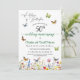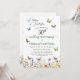 Um convite elegante para o aniversário do casamento verde com flores silvestres e borboletas coloridas que você pode personalizar adicionando seus detalhes.