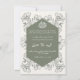 Personalize por si mesmo! Totalmente personalizável (texto, data, nome, hora, local e texto árabe) cartão de convite para casamentos muçulmano de quadro floral verde elegante com tradução árabe. Apresentando o Bismillah, a caligrafia árabe e uma surah do Corão de um lado e o inglês do outro. Se você quiser apenas o texto de tradução árabe e não a sura do Corão, exclua os dois primeiros textos árabes com o (edite usando a ferramenta design). O moderno cartão de casamento islâmico muçulmano árabe inglês moderno e elegante, de Feliz Sempre. Apresentando nosso conveniente e econômico recurso: Disponibilidade de download digital! Personalize e baixe seu arquivo instantaneamente, sem a necessidade de edição adicional em programas separados.