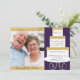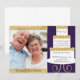 Este convite de festa de aniversário de 50 anos inclui uma foto do casal feliz. Roxo e dourado fazem um cenário elegante para este convite.