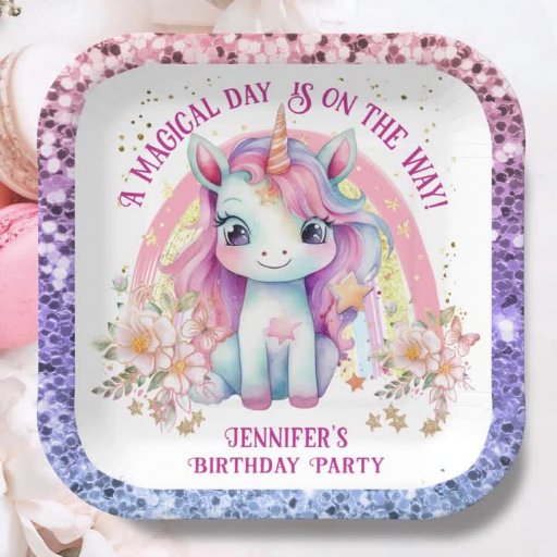 Convite Unicorn 8º aniversário Dourado Glitter Floral Rain