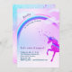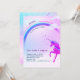 Este vibrante convite para aniversários de criança apresenta um unicórnio e um arco-íris com um toque. A design tem um lindo fundo pastel iridescente com nuvens flutuantes brancas e lisas. O nome da criança e a descrição são apresentados na curva do arco-íris dando-lhe um olhar interessante. O fundo apresenta um fundo holográfico brilhante. O esquema de cores é essencialmente azul e rosa com toques de roxo e verde. Personalize o convite de aniversário unicórnio e arco-íris com o nome do seu filho, data de nascimento, hora e local. Veja também outros produtos de correspondência divertida da coleção!