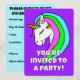 Esta design de festa divertida apresenta uma cor de fundo brilhante e um feliz unicórnio arco-íris. Personalize com seu próprio nome, idade e informações! Projetado no belo estado de Washington, EUA, por um artista independente.