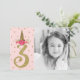 Convite Unicórnio Brilho Dourado Rosa 3 Aniversário de 3 a