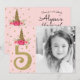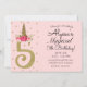 Convite Unicórnio Brilho Dourado Rosa 5 Aniversário de 5 a