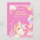 Convite Unicórnio Mágico Aquarela Rosa
