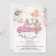 Adorável condução por convite de chá de fraldas, com elegante verde-aquarela, bonito flores, adoráveis animais da selva e balões festivos cor-de-rosa e ouro.