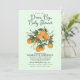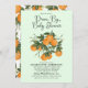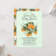 Bipe, Honk, Shout e Wave! Convite de chá de fraldas Whimsical, que apresenta laranjas lindas pintadas à mão e verde-azul.