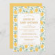 Cute Yellow Foliage Drive By Chá de fraldas Invitation - Comemore a chegada do seu bebê precioso com este simples, fofo e adorável 'Drive By Chá de fraldas Invitation' com fruta de limão amarelo cercado por padrão foliar de folha. Todos os textos estão pré-organizados para que você personalize fácil e rapidamente com os detalhes do seu chá de fraldas.
