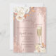 pérolas de chico elegantes e prosecco, rosas e gotas de ouro em fundo rosa de ouro. Um convite bonito que pode ser personalizado com seu nome. Selecione o botão "personalizar" para alterar o estilo, a cor e o tamanho da fonte.