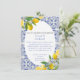 Celebrate love and kindness with this beautiful wedding invitation design featuring illustrations of lemons and lemon blossoms. Tessa and Michael's special day is all about sharing joy and giving back to the community. Instead of gifts, they're asking for donations to their local homeless charity. This heartwarming design is perfect for couples who want to make a difference on their big day.