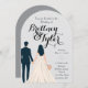 wedding invitation with couple illustration, arch wedding invitation, romantic wedding stationery, personalized wedding suite, semi formal wedding invite, modern romantic invitation, calligraphy wedding invite, minimalist arch wedding design, black white grey wedding theme, illustrated couple invitation, printed wedding invitations, digital download wedding invite, until forever collection, modern classic wedding stationery, custom monogram wedding invite